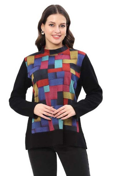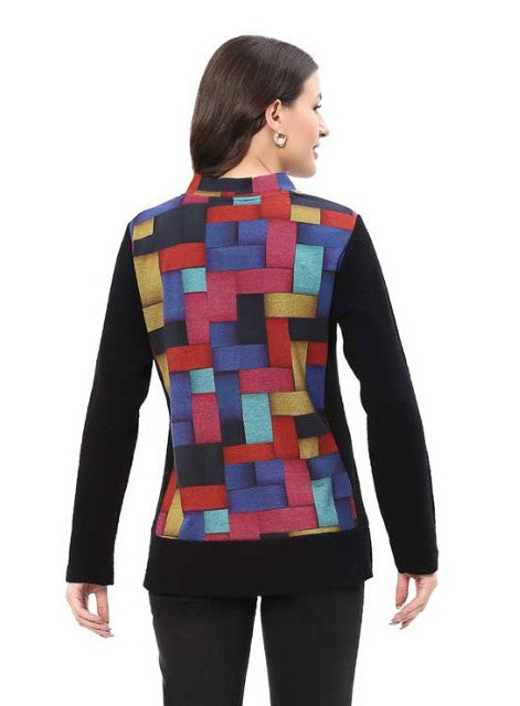 - Contrasting Textured Long sleeve and banded hem and side panels