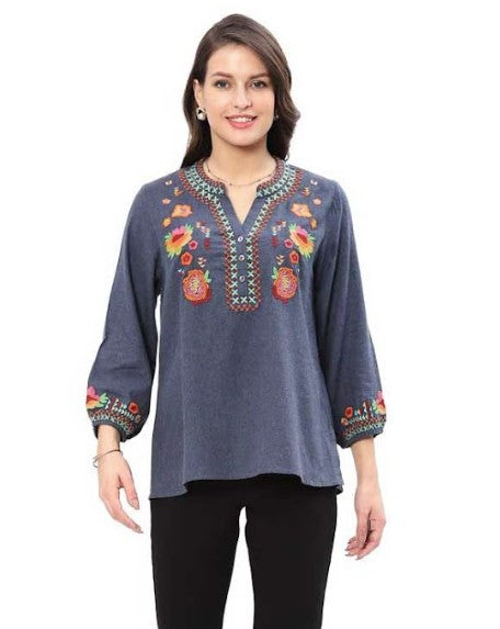 Parsley & Sage Victoria Embroidered Shirt (DEN/MULTI)