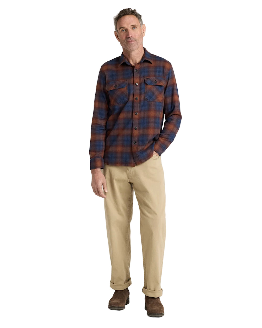 Pendleton Men's Burnside Cotton Flannel Navy Brick Plaid Shirt