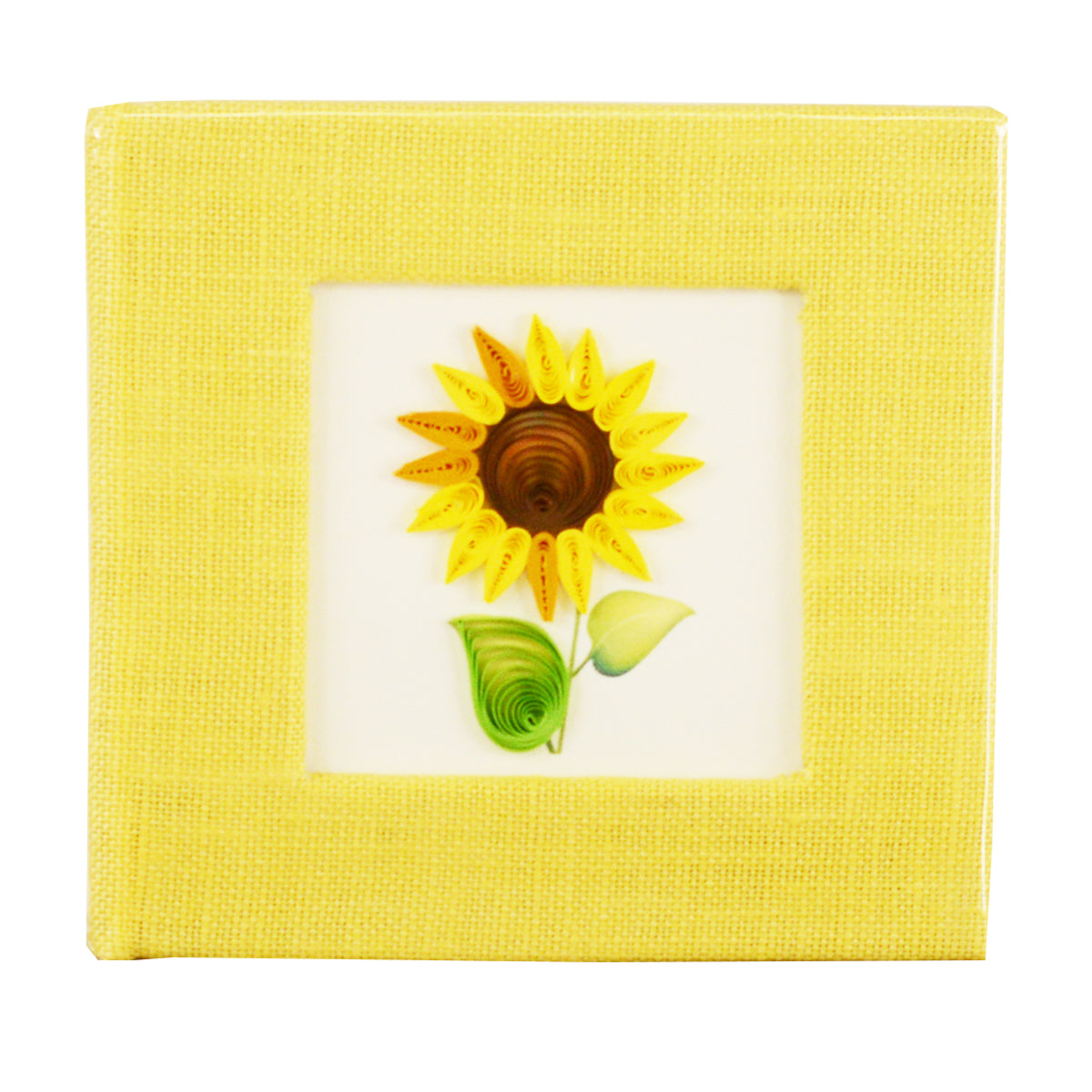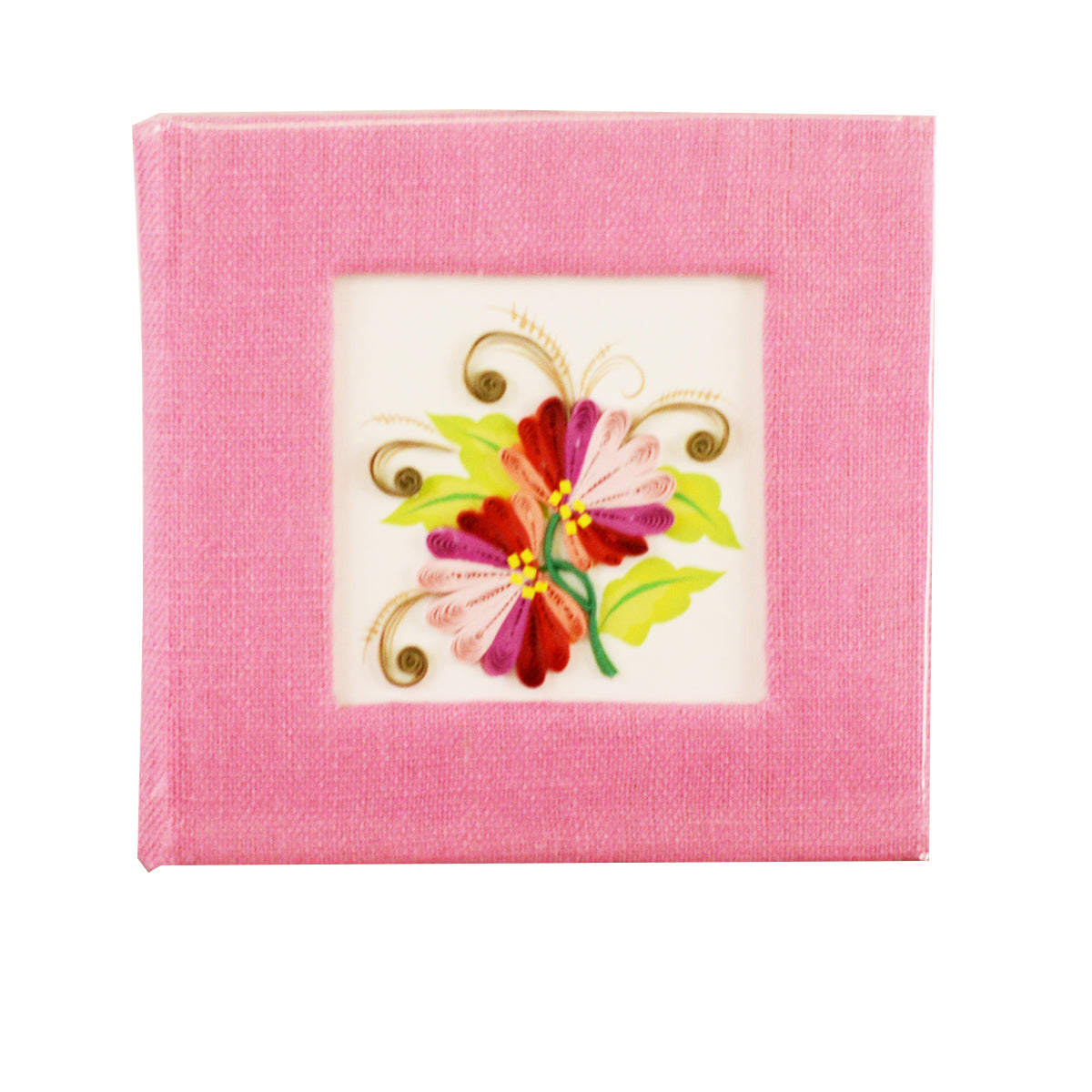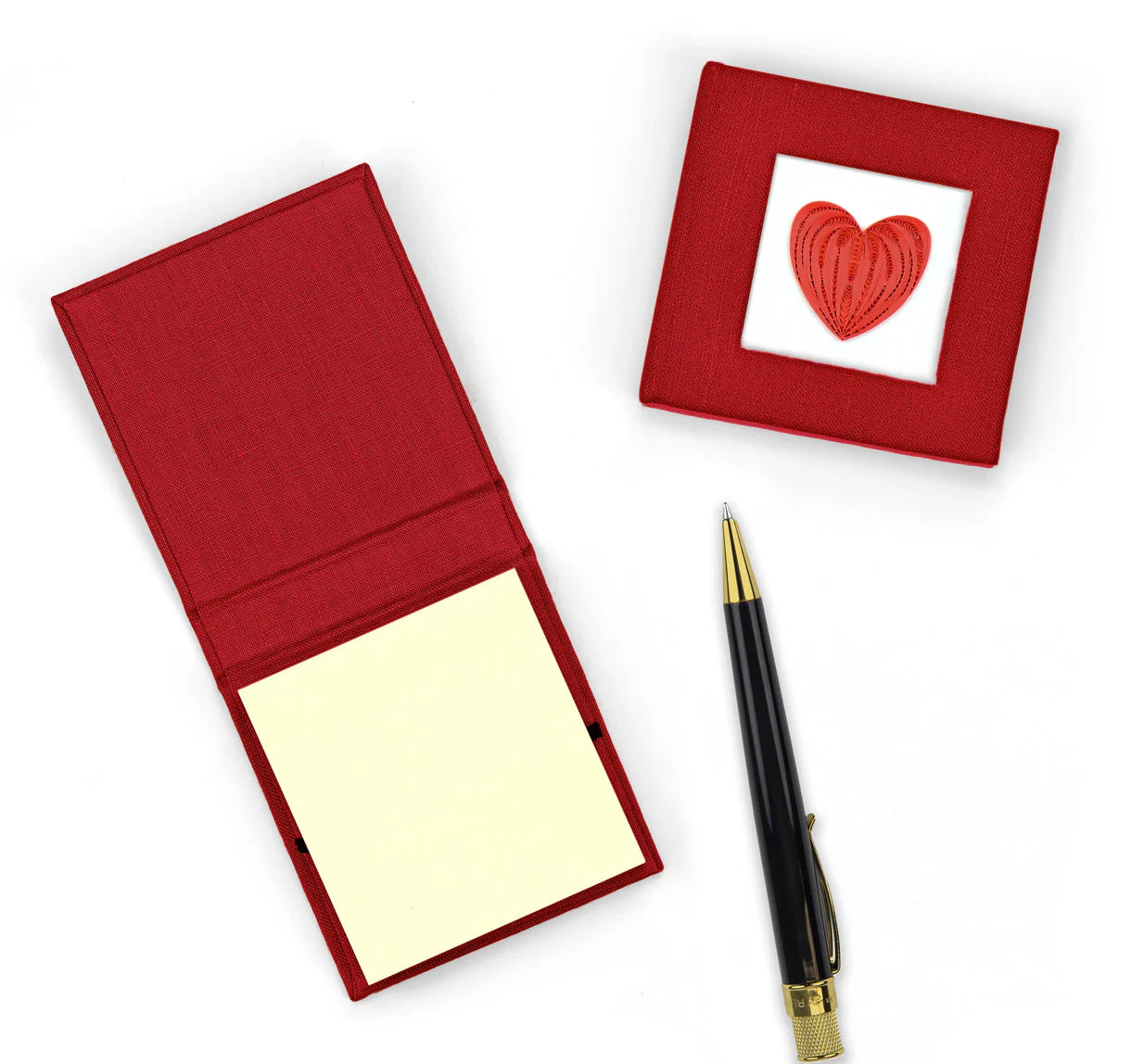 Liven up your workspace by keeping your sticky note pad in a colorful, handcrafted cover! A quilled design featured on the front is framed by the linen-wrapped cover and is a unique gift that anyone will love!