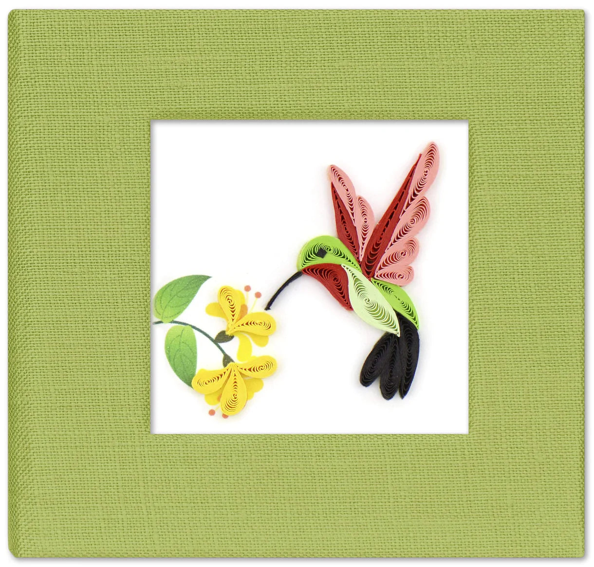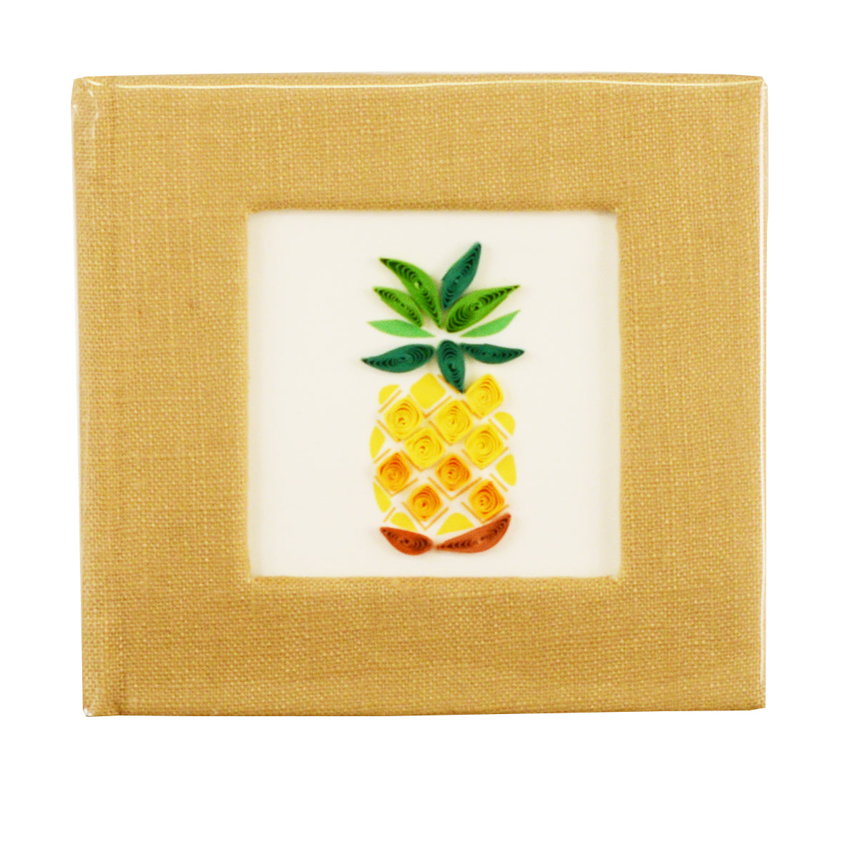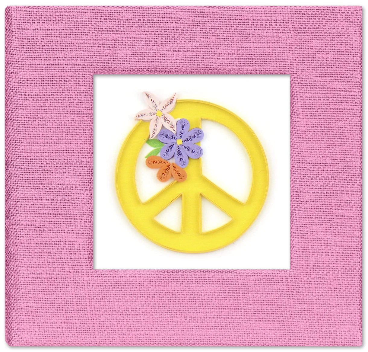 Liven up your workspace by keeping your sticky note pad in a colorful, handcrafted cover! A quilled design featured on the front is framed by the linen-wrapped cover and is a unique gift that anyone will love!