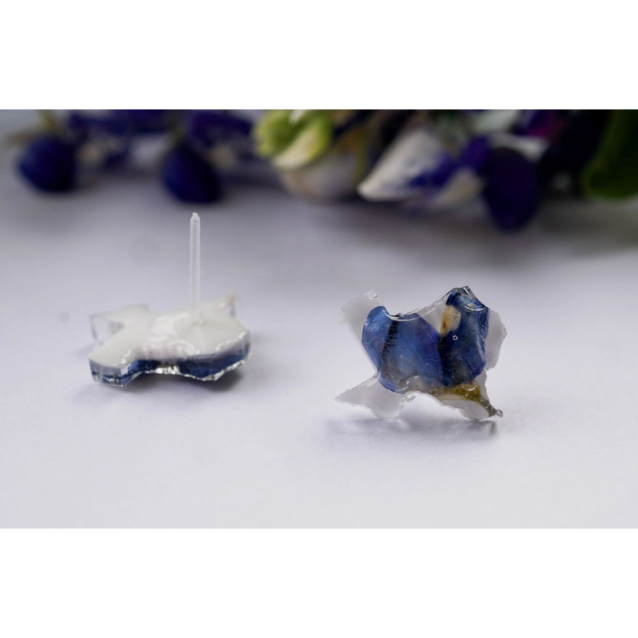 Remedy Designs Texas Shaped Pressed Bluebonnet Stud Earrings