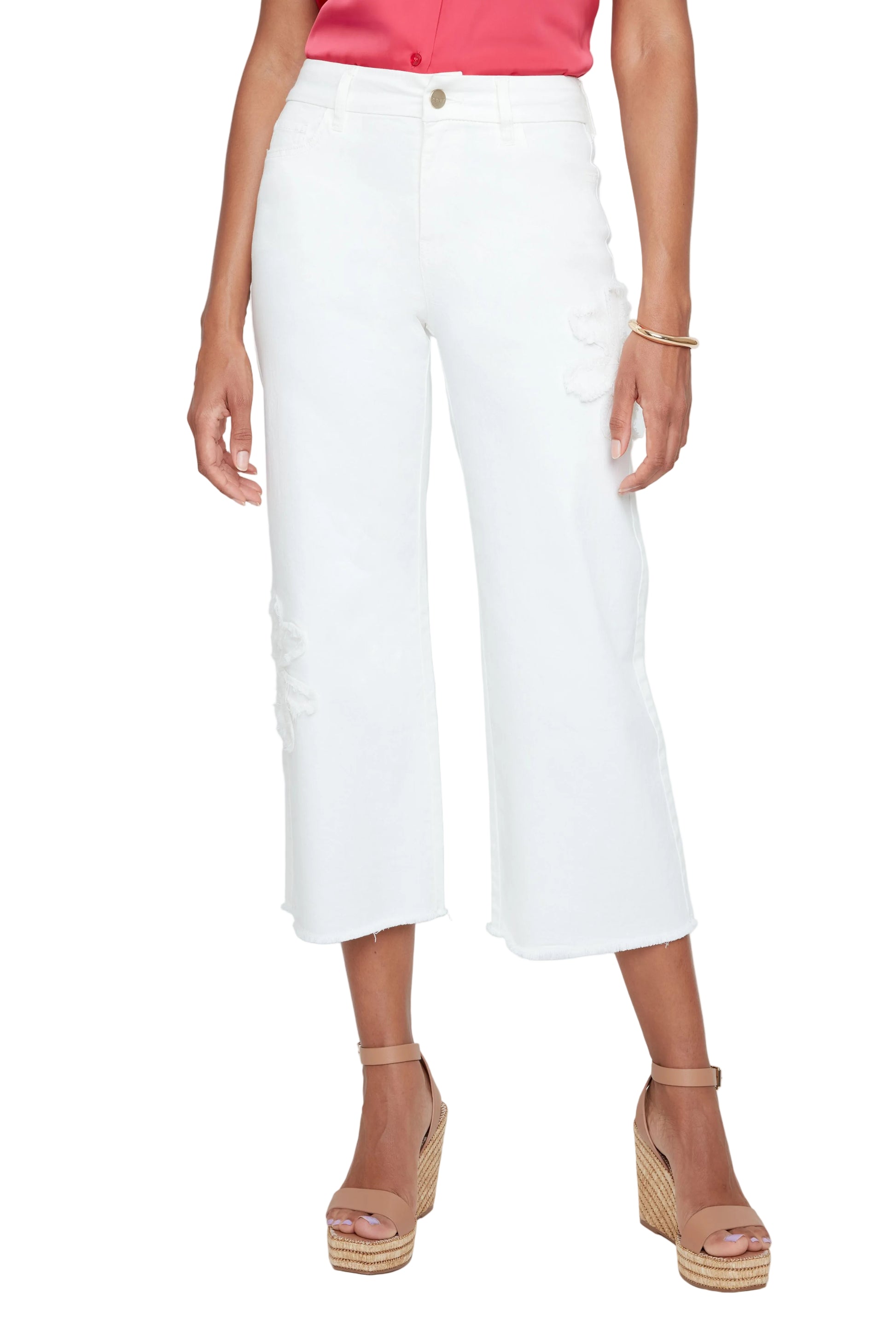 Renuar Fringe Applique Flower Woven Pant (R11057D E2141) (Creme)