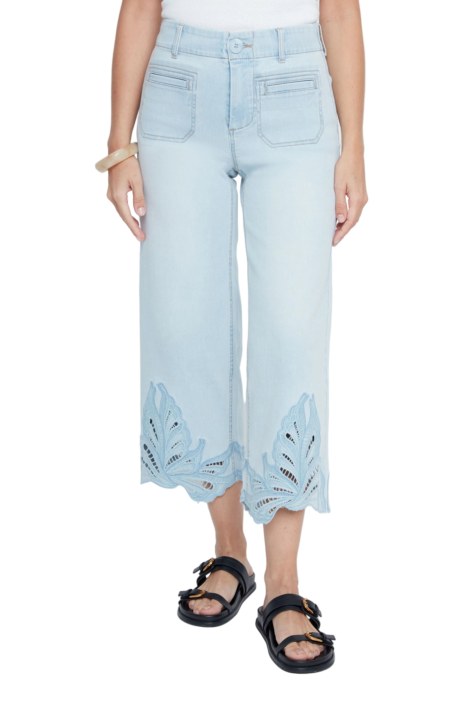 Renuar Embroidered Eyelet Woven Pant (R11043D E2141)(Bleached Blue Wash)