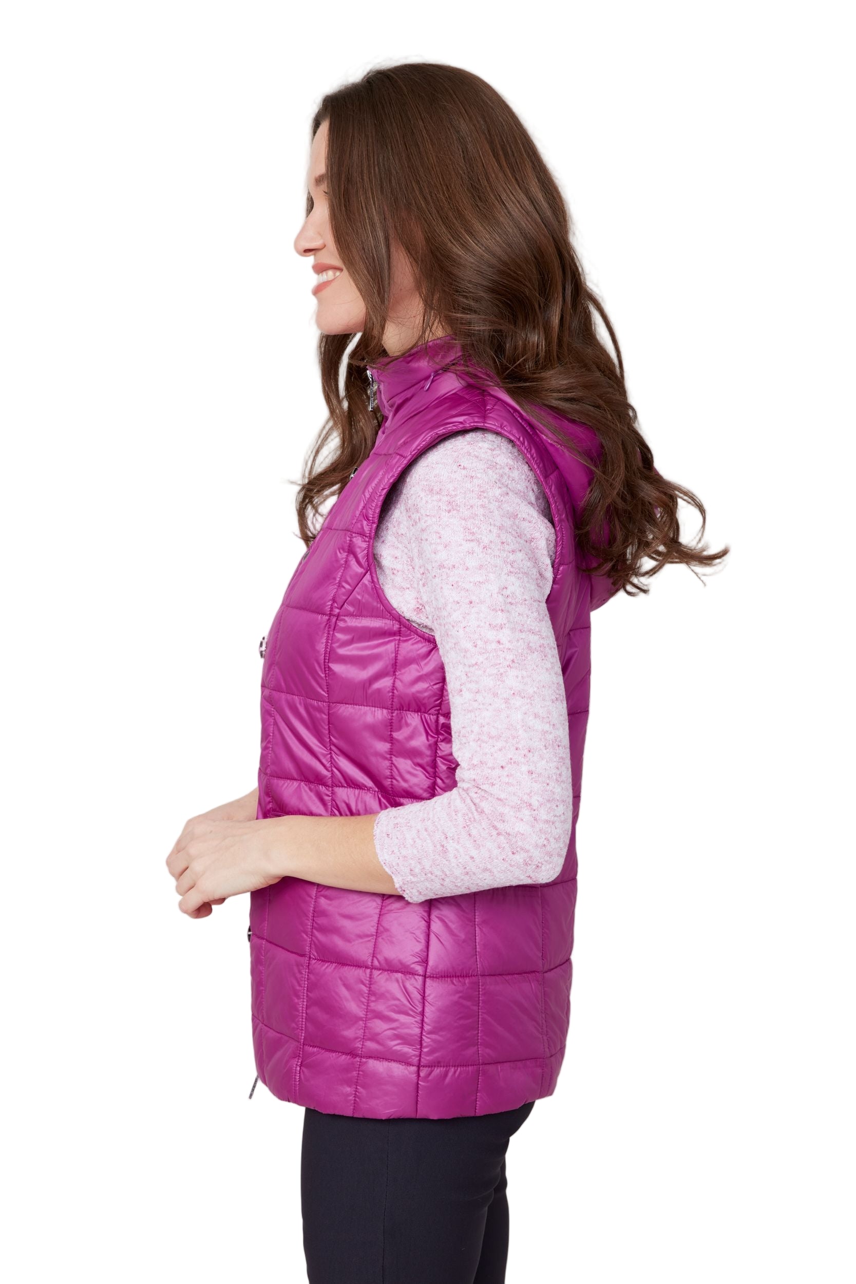 Renuar Luxe Quilted Puff Hooded Vest (R3907L-E3034)(Plum)