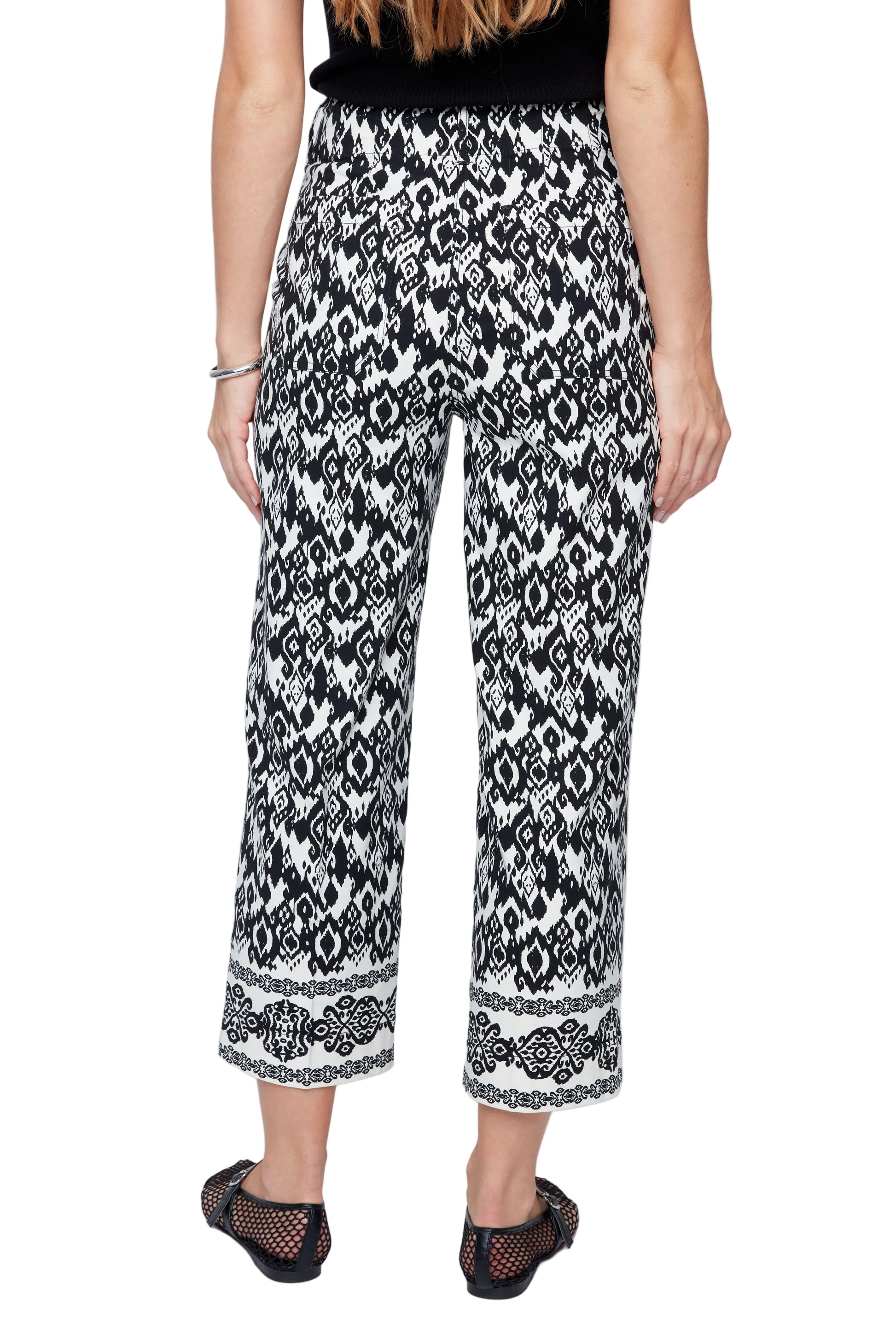 Renuar Woven Border Print Linen Blend Crop Pant (R11052)(Black Combo)