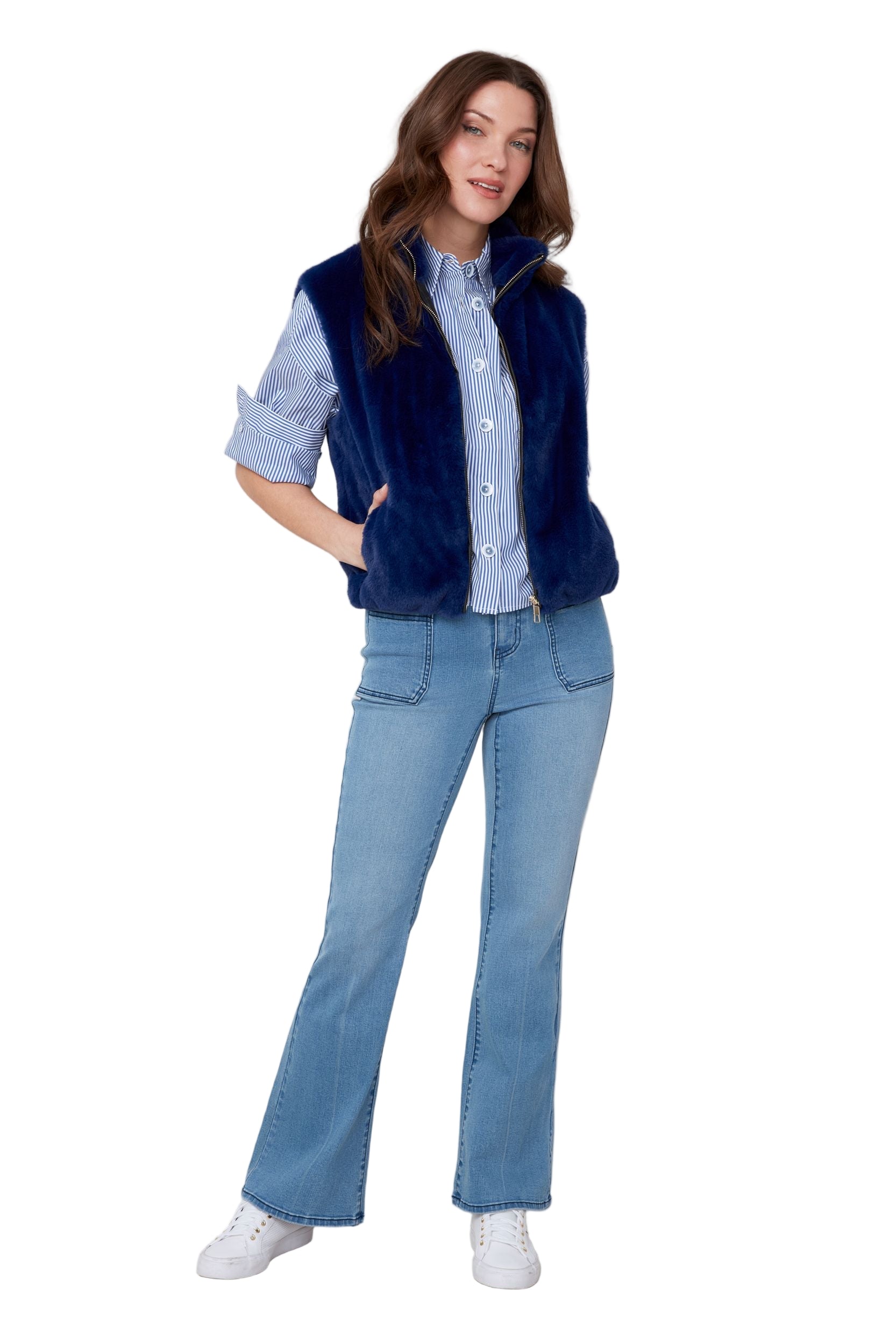 Renuar Vegan Fur Short Oxford Blue Vest( R3879L-E3011) (Oxford Blue)