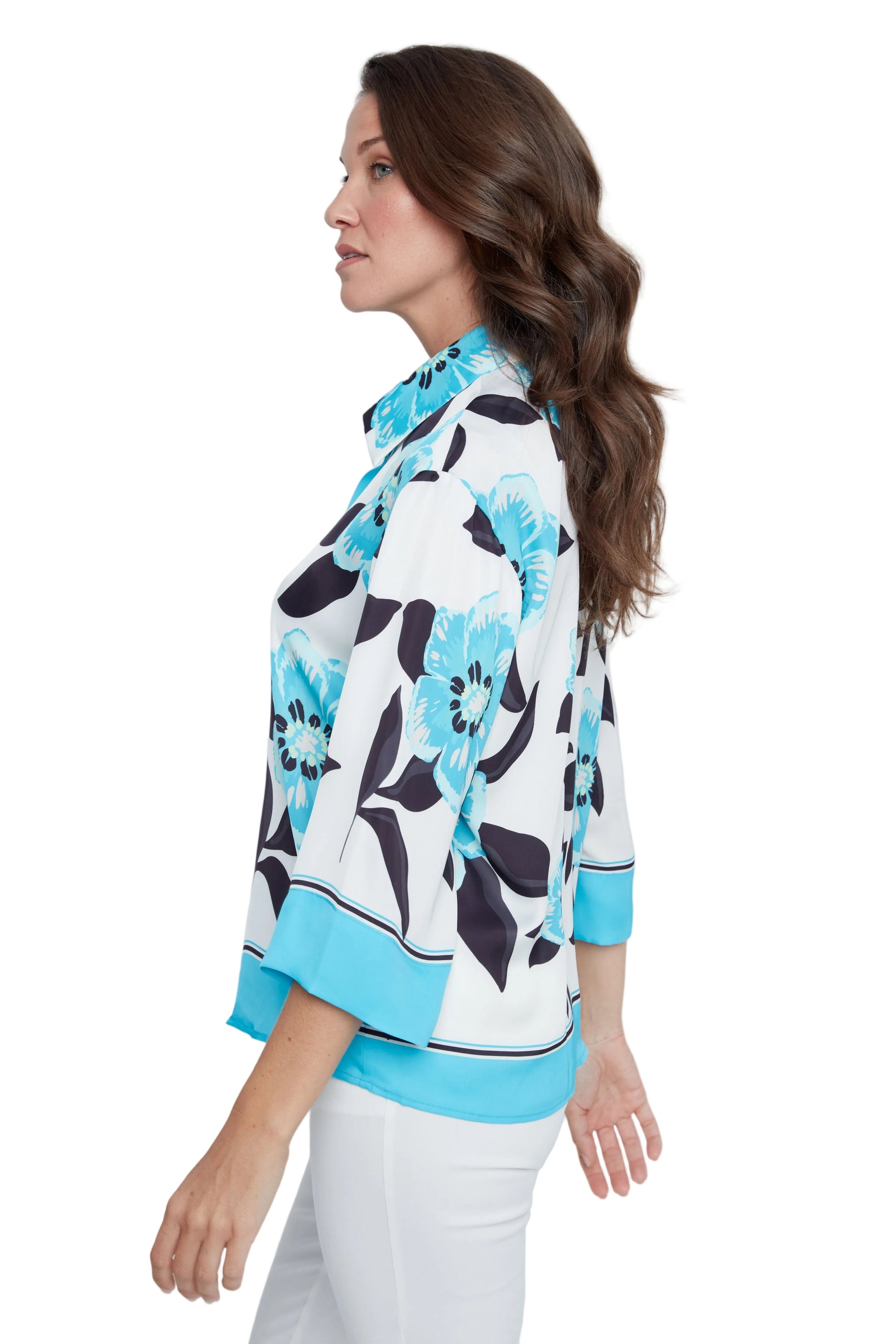 Renuar Woven 3/4 Sleeve Blouse (R5247465)(Ocean)