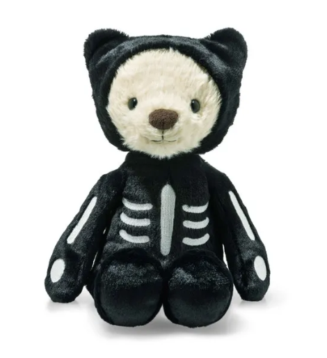 Meet Mr. Bones Teddy Bear from the Steiff Halloween Collection—an adorable yet spooky plush Teddy Bear dressed in a skeleton costume. Add a festive touch to your Halloween celebrations with Mr. Bones! Dressed in a dapper skeleton costume, Mr. Bones Teddy Bear is ready to bring some frightful fun to your Halloween celebrations. With his velvety-soft fur and intricately designed skeleton costume, he’s a must-have for Teddy Bear lovers and Halloween enthusiasts alike. Standing proudly at 14 inches tall, Mr. Bones is a standout member of the Steiff Halloween Friends plush collection!