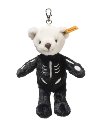 Dressed in a playful skeleton suit and made from soft black-and-white plush, Mr. Bones Teddy Bear Keyring is ready for spooky adventures. Measuring 6 inches tall, he’s the perfect Halloween companion - whether clipped to a backpack, school bag, or keys. Detailed embroidery gives his bones character and charm, while the iconic “Button in Ear” adds a signature touch. Fun, festive, and full of personality, Mr. Bones is a treat for little trick-or-treaters and Steiff fans alike.