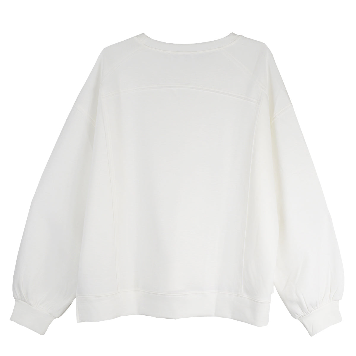 - Balloon sleeve, thick bottom hem with side slit, and raw edge accents for added style