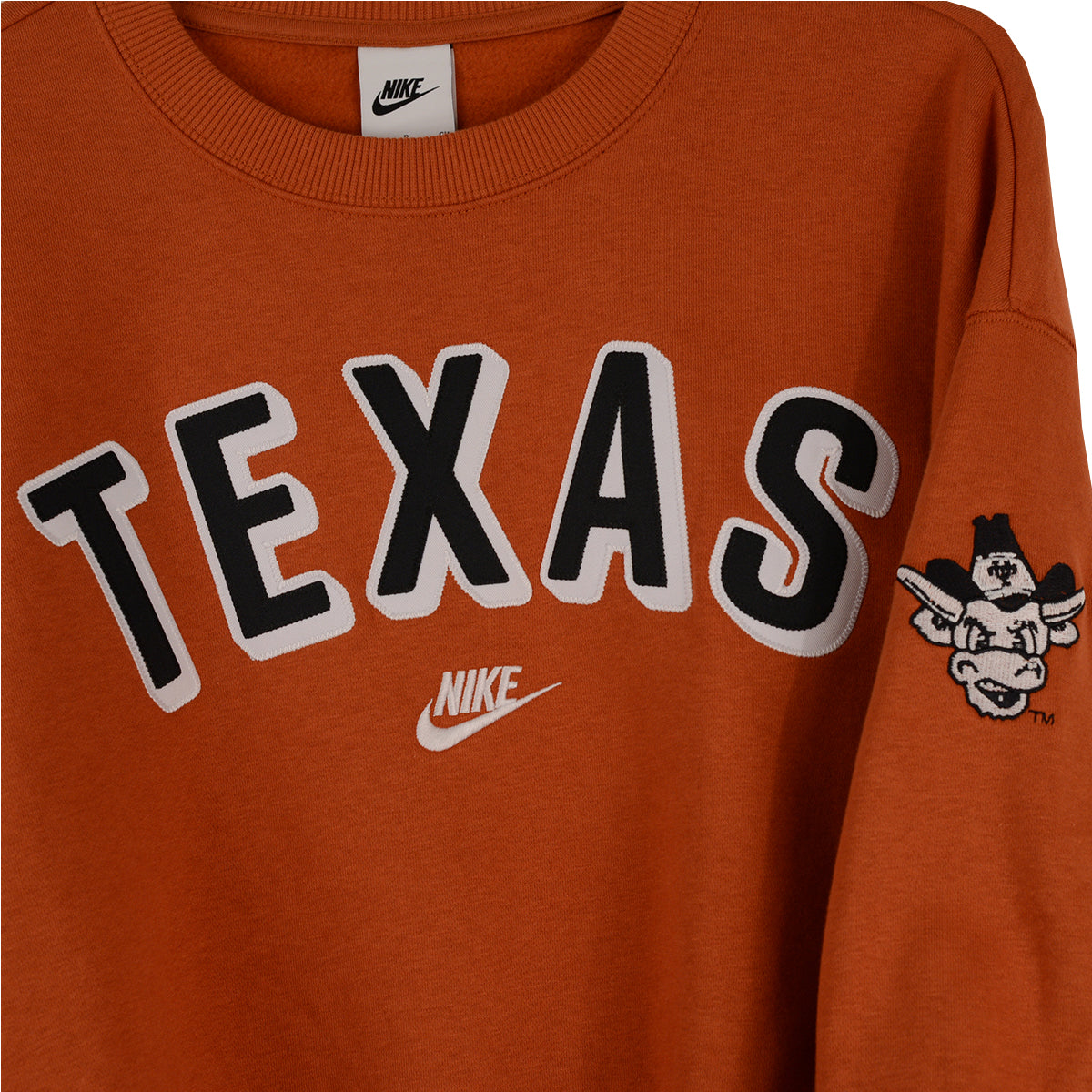 Stay comfy in trend-setting Texas Longhorns outerwear with this Oversized Legacy Phoenix Sweatshirt by Nike. The oversized silhouette and dropped shoulders create a roomy, relaxing fit and modern look. Cozy fleece fabric and brushed French terry lining Provides a luxuriously soft feel and exceptional warmth, making this Texas Longhorns sweatshirt an essential for cold conditions.
