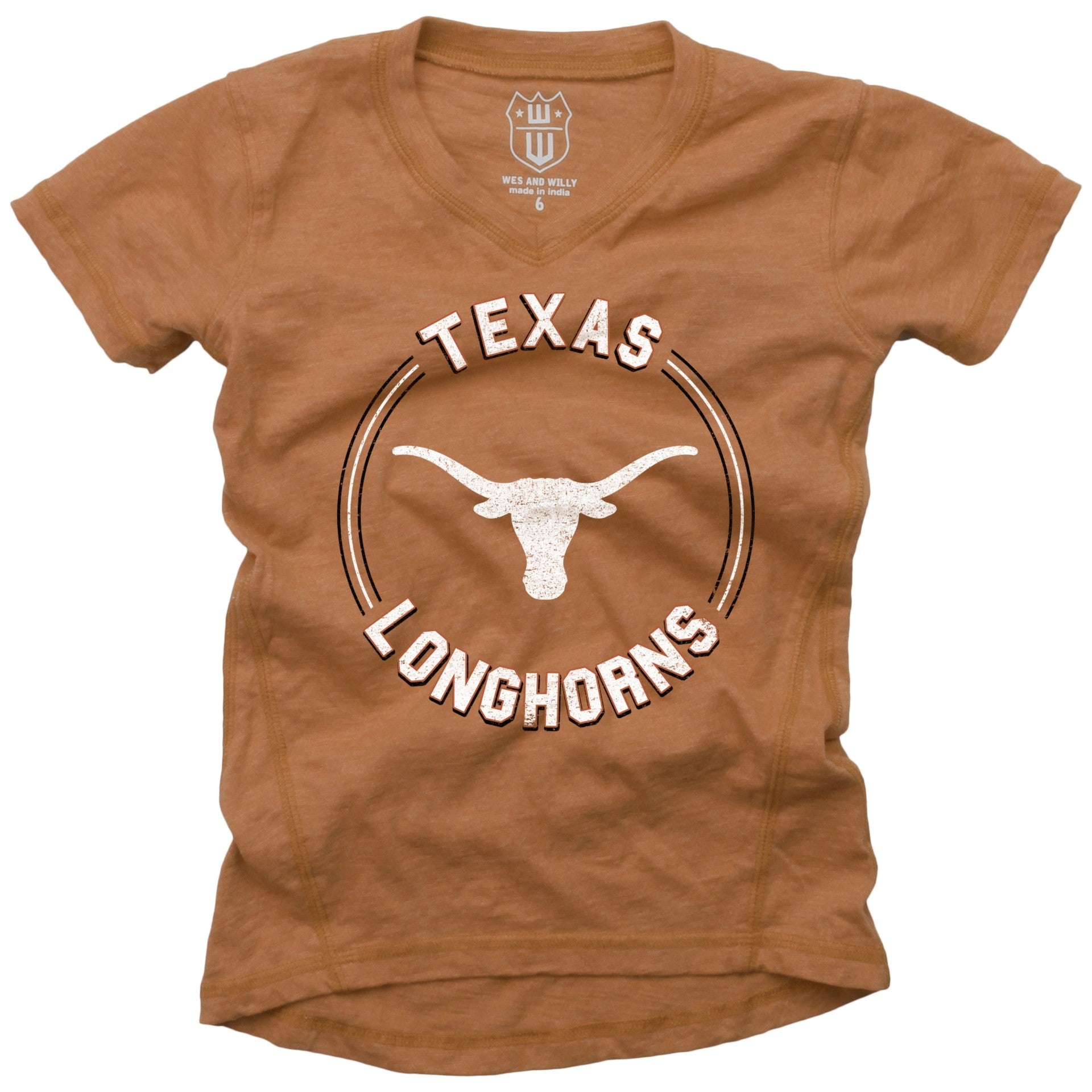 Texas Longhorn Wes & Willy Youth Girl's Logo In Circle V-Neck Tee (71STEX437)