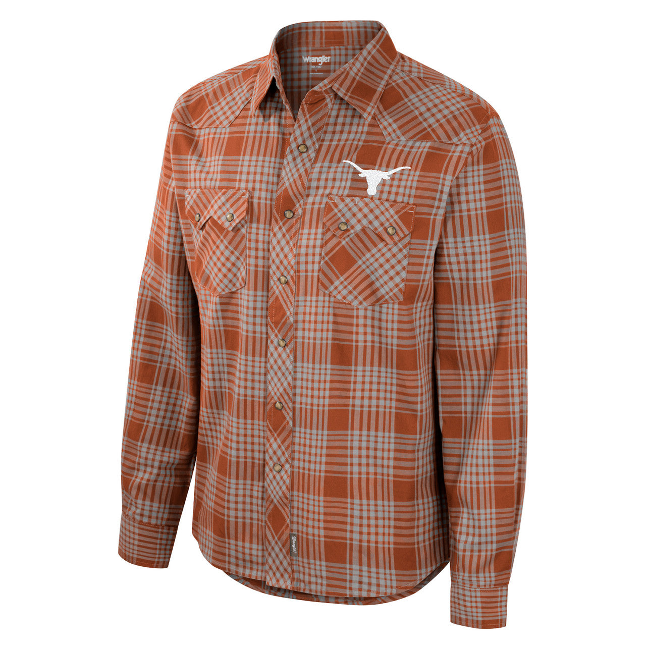 Texas Longhorn Wrangler Mens' Logo Plaid Snap Shirt (WRL11290) BO