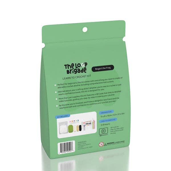 Introduce your customers to the world of crochet with The LOOP Brigade DIY Mini Crochet Plush Toy Complete Kit. Perfect for beginners, this kit provides everything needed to create a lovable plush character—like Bogart the Frog! Featuring clear instructions and a QR code for step-by-step video tutorials, this kit makes learning crochet easy and fun.