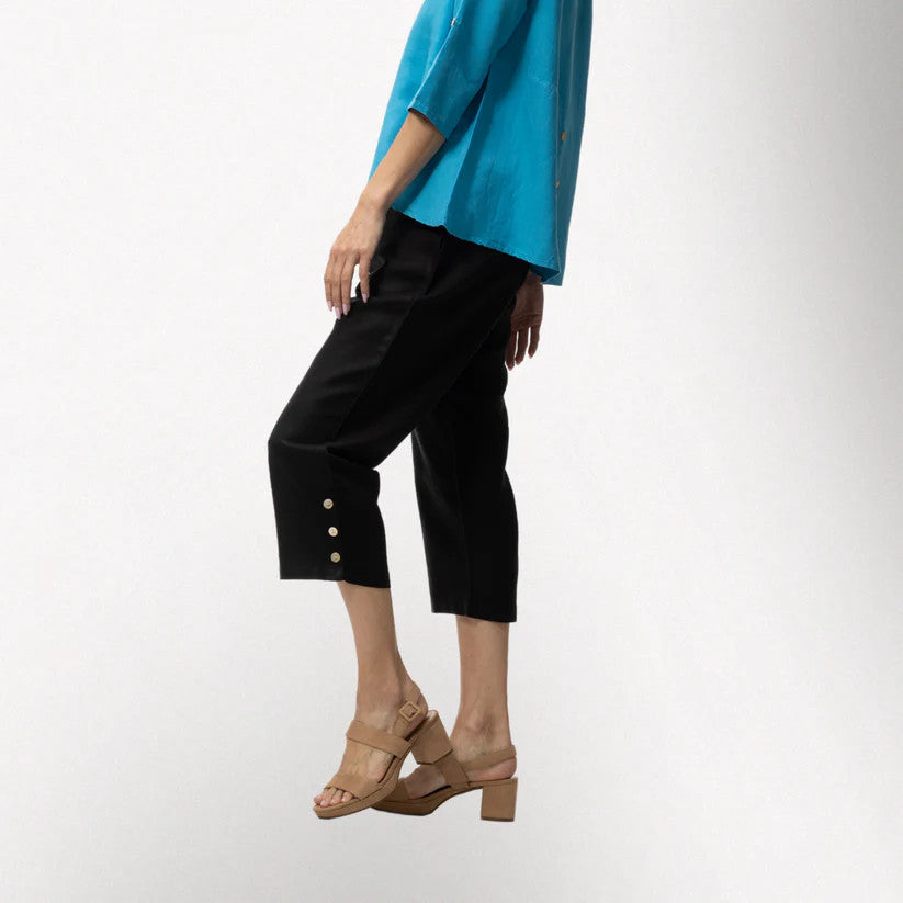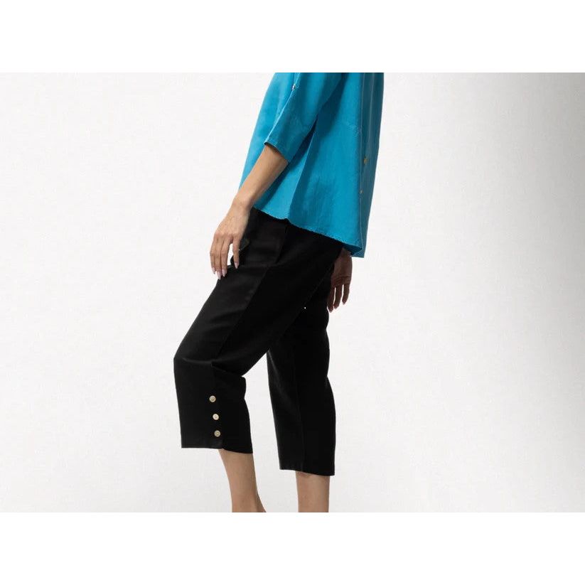 Toofan Linen Side Button Detail Solid Capri (3 Colors)
