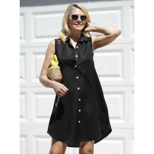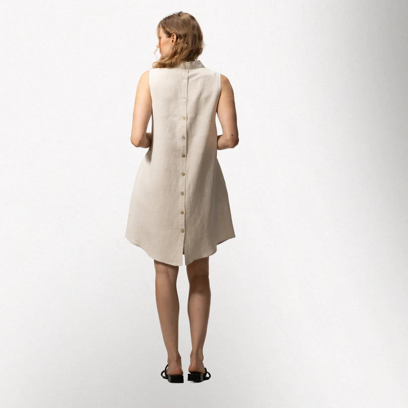 Toofan Linen Sleeveless Back Button Dress (4 Colors)